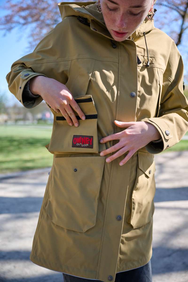 Die geschützt hinter der Abdeckleiste liegende und damit ohne Öffnen des Front-RV leicht erreichbare Napoleon-Tasche mit RV ermöglicht den schnellen Zugriff z.B. auf das Mobiltelefon, Karten oder Schlüssel. Eine weitere große Tasche mit Abdeckklappe für das Smartphone und eine mit RV gesicherte Tasche für Papiere Geldbörse und vieles mehr befinden sich auf der rechten Innenseite. Auf der linken Seite bietet sich die Netztasche für den schnellen Zugriff auf größere Gegenstände, wie ein Brillenetui oder die Taschenlampe an. Darunter liegt die große RV-Tasche, hier erleichtert der 2-Wege-Front-RV den Zugang zu der praktischen Öffnung für die Kotbeutel ohne dass die Jacke komplett geöffnet werden muss.