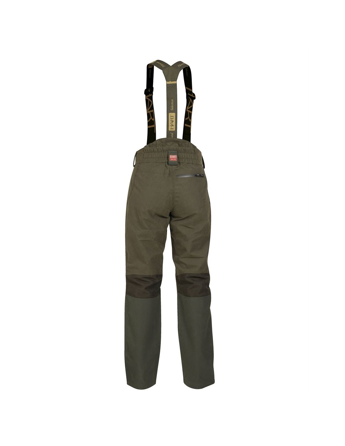 Widerstandsfähiges und geräuscharmes Fischgratgewebe mit einer verstärkenden ARMOTEX®-Schicht an Vorder- und Rückseite der Beine. Innen wasser- und winddichte OSMOTECH-Membrane. Ihre Hosenträger und der elastische hohe Bund zum Schutz des Lendenbereichs, erhöhen den Komfort in aktiver Passform. Das Innenfutter aus Mesh-Netzgewebe verbessert die Atmungsaktivität. Die Höhe kann mithilfe der elastischen Hosenträger (abnehmbar) angepasst werden.