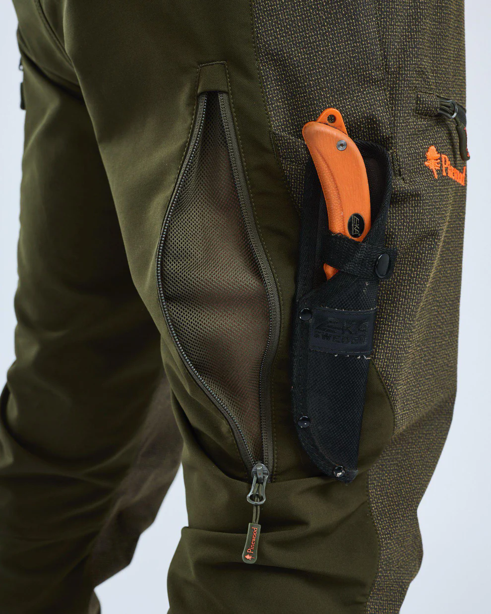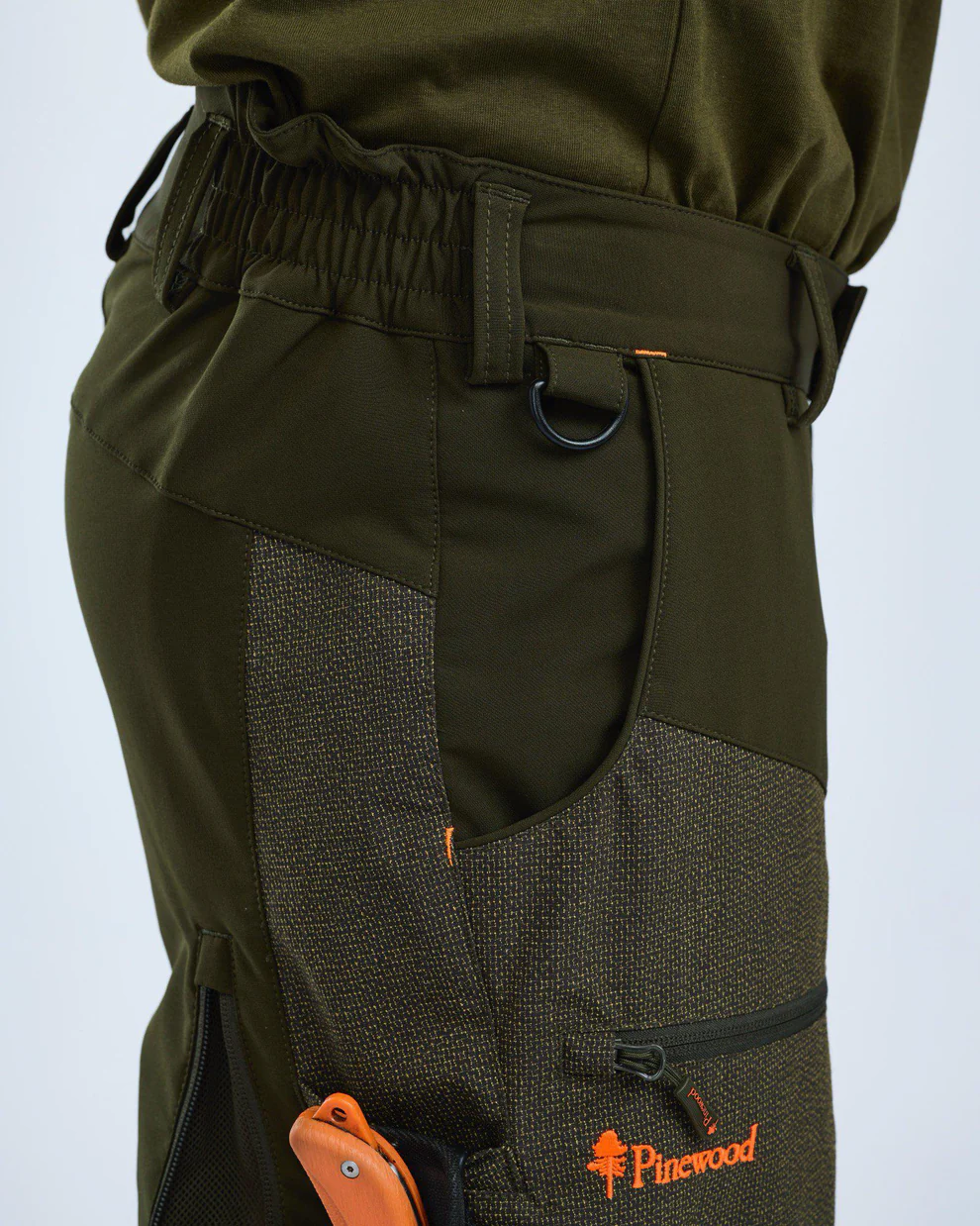 Diese Hose hat reißfeste Kevlar®-Verstärkungen zum Schutz vor Dornen und Ästen – ideal für den Einsatz im dichten Unterholz. Kevlar® wird häufig in Arbeitskleidung und Ausrüstung für besonders anspruchsvolle Umgebungen verwendet. Die übrigen Partien der Hose bestehen aus 4-Wege-Stretchmaterial mit leichter, wasserabweisender Imprägnierung. Im oberen Bereich ist die Hose leicht und ungefüttert, was Atmungsaktivität und Bewegungsfreiheit an den entscheidenden Stellen bietet.