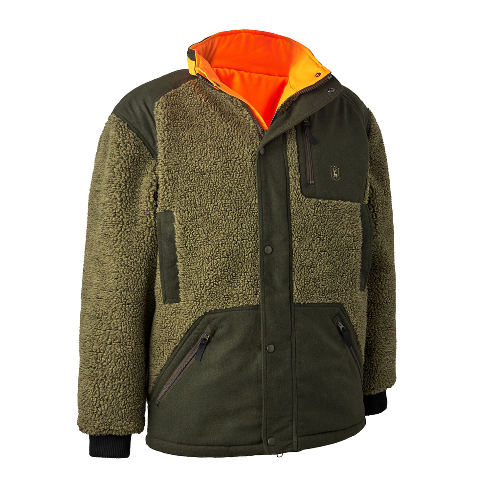 Mit der Deerhunter Germania-Wendejacke sind Sie immer gut sichtbar und bestens geschützt. Hergestellt aus 100% Polyesterfaserflor und mit einer Deer-Tex®-Membran ausgestattet, ist diese Jacke sowohl geräuschlos als auch für die Jagd bei schwierigen Wetterbedingungen geeignet, wenn es darauf ankommt, geräuschlos zu bleiben. Die Jacke zeichnet sich durch eine Fülle von praktischen und komfortablen Eigenschaften aus, die bei der Jagd wichtig sind. Zwei Handwärmertaschen, zwei Vordertaschen, ein abnehmbares orangefarbenes Band für bessere Sichtbarkeit und ein Rippstrickbündchen am Ärmelabschluss sorgen für eine hochwertige Jagdjacke.
