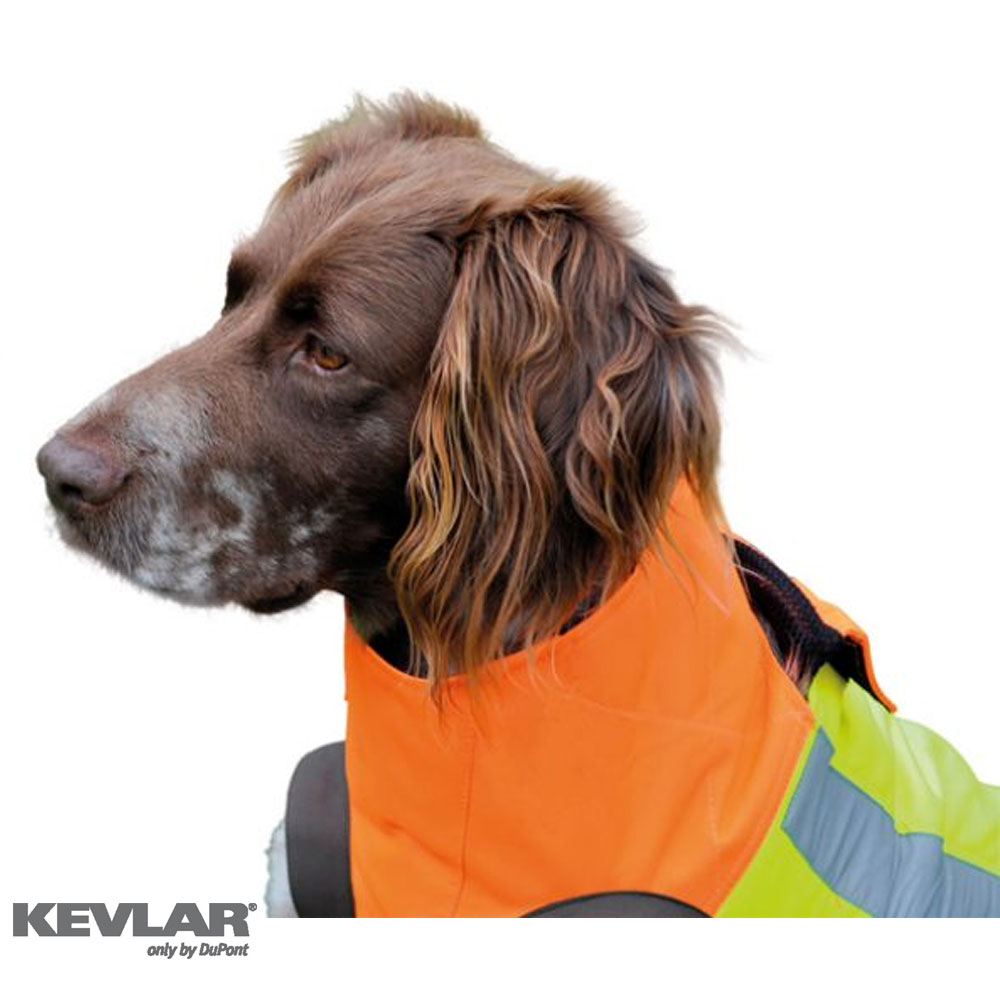 Mit dieser hochwertigen Kevlarweste von Hubertus schützen Sie Ihren Jagdhund vor Schwarzwild und anderen Wildarten.