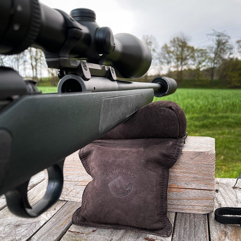 Das geschmeidige Leder passt sich optimal an Lauf und Gewicht der Jagdwaffe an und sorgt so für eine ruhige, stabile Schussposition. Zwei integrierte Gewichte an den Seiten gewährleisten sicheren Halt und verhindern ein Verrutschen der Auflage, selbst bei glatten Oberflächen.