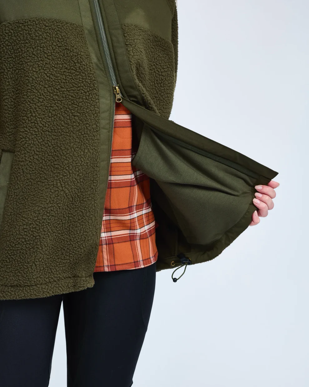 Die Damen Fleecejacke ist aus einem flauschig-weichen Material und Schafwolle nachempfunden. Sie ist besonders leise, angenehm warm und ideal für kühle Tage. Verstärkungen an den Unterarmen und der Brust aus strapazierfähigem TC-Lite sorgen für zusätzliche Langlebigkeit und verleihen einen Look aus Materialmix.