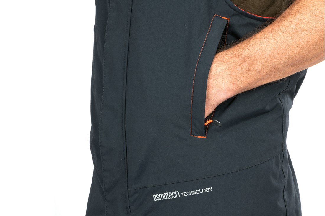 Verschweißte Nähte. Hohe HDI-Wärmeisolierung von 160 g/m² im Rumpf und 100 g/m² in Ärmeln, Kapuze und Latz. Warmes Innenfutter aus Mikrofleece in der Jacke und angenehmer Taft im Latz. Lockere Passform für den Einsatz über anderen Kleidungsstücken oder Thermounterwäsche. Wasser- und winddichte OSMOTECH-Membran. Hochgradig wasserdicht (8000mm) und atmungsaktiv.