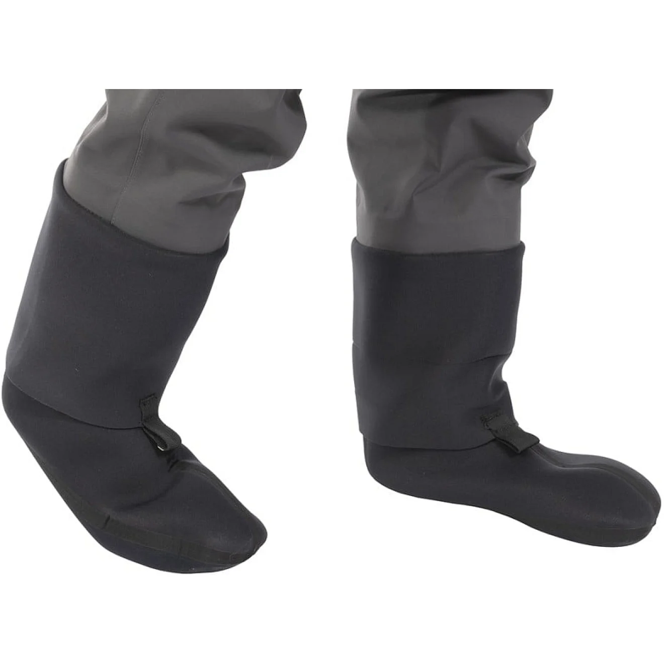 Brusttaschen mit wasserabweisendem YKK-Reißverschluss (ACHTUNG: Es handelt sich nicht um eine wasserdichte Tasche). Innentasche mit Reißverschluss. Verstellbare, elastische Schultergurte für einen bequemeren Sitz. Die kombinierte Brustbefestigung für Männer und Frauen ermöglicht es, die Wathose auf die Taille umzulegen und zu befestigen, indem die Schultergurte in einen Gürtel umgewandelt werden. Verstellbarer, elastischer Hüftgurt mit Neopren-Gürteltasche. Ringe zum Aufhängen von Zubehör und Werkzeug. Elastische Neoprengamaschen SCR für einfaches Anziehen und Stiefelclip. Neoprensocken, hochdichte Sohle und gummierte Fersen- und Sehnenverstärkung zur Vermeidung von Stiefelverschleiß. Tragetasche.